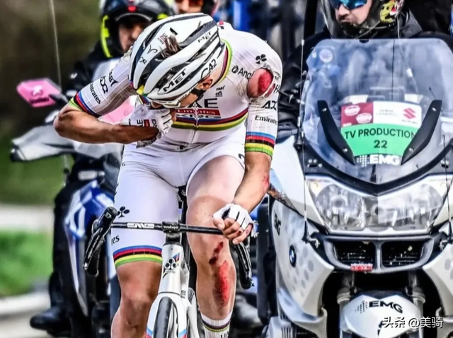 无论骑行水平高低,摔车从来都不是一件小事。如今摔车事故愈发频繁且严重,首要原因便是赛事竞技层面的争夺愈发激烈。国际赛事日程安排愈发密集,UCI 积分对车手参加顶级赛事、车队维系经济生存的影响空前重要。每一个排名位置都至关重要,每一次突围都可能重新改写车手的排名格局。在这样的背景下,哪怕是一米的赛道,都成了车手们必争的领地。车手们始终处于高度紧张的骑行状态,尤其是春季古典赛中,狭窄的赛道突变的陡坡让赛场卡位成为赢得比赛的关键,甚至直接决定着车手能否继续留在赛场上。